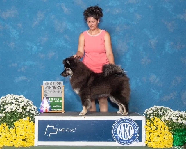 Deja is an import from Finland and she would not have been possible to be a part of my program without the collaboration of friends Melanie Curtis (Tundrai Finnish Lapphunds) and Brianna Page (Deerlane Finnish Lapphunds) in Australia. She has a super sweet dispostion, beautiful thick coat and structurally is very sound - she completed her championship rather quickly with minimal showing. Deja’s pedigree is quite unique and the opportunity to have her in the gene pool here in the US is just incredibly appreciated. Thank you to her breeder Anu Mehtala for trusting her to come here to earn her AKC Championship and complete required testing for export to Australia. Thank you Mel and Bri for allowing her to have a litter here before she heads of for new adventures in Australia!